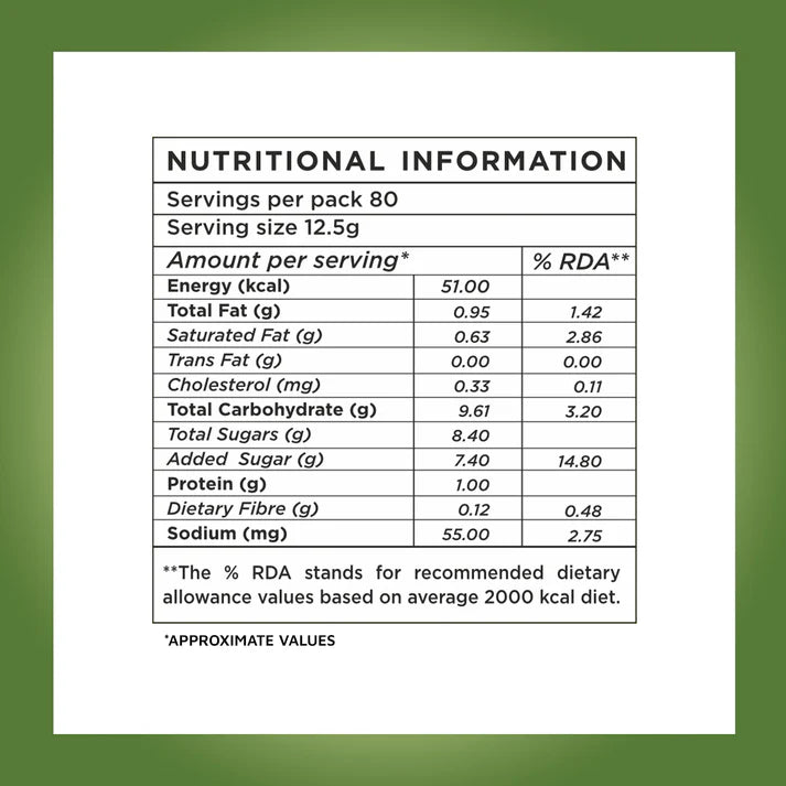Ingredients – Sugar, Milk Solids, Instant Tea Powder (5.5%), Maltodextrin, Cardamom Powder