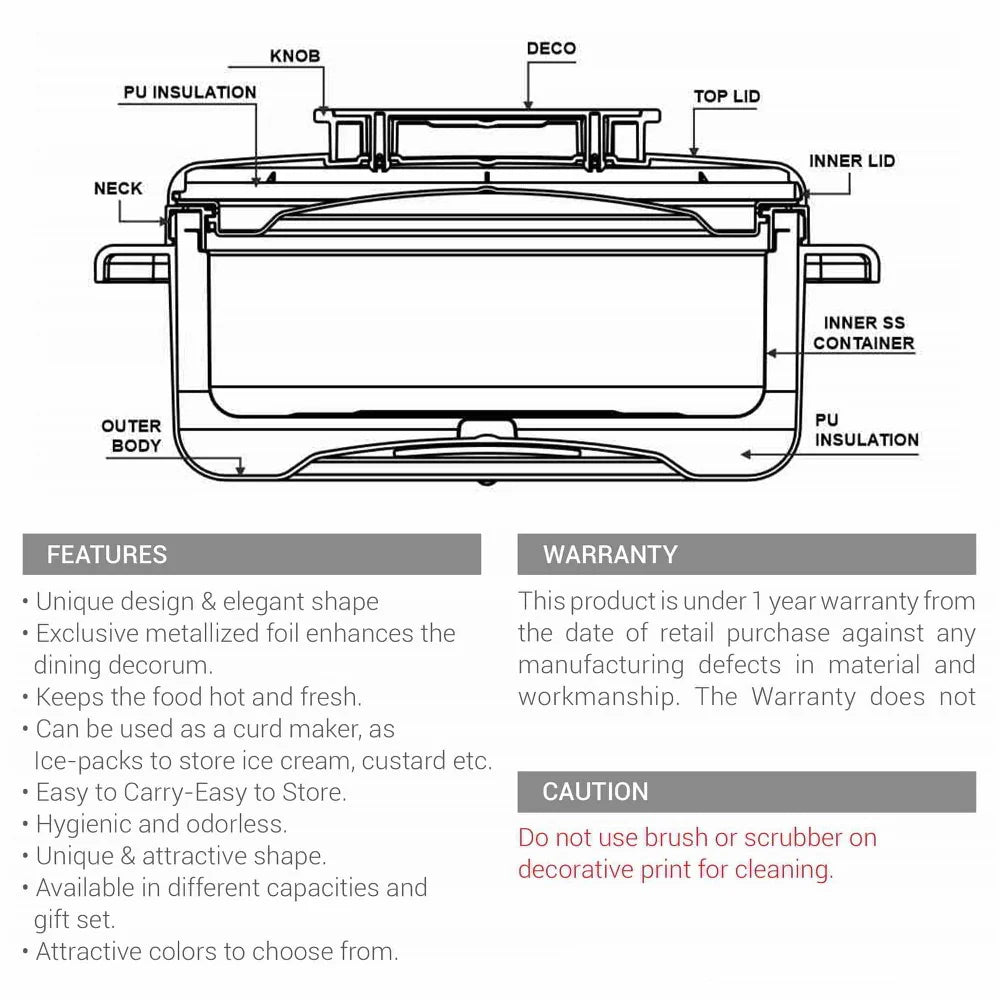 Versatile Use: Ideal for serving salads, chapatti, roti, and more. Can also be used as a curd maker or to store ice cream and custard.